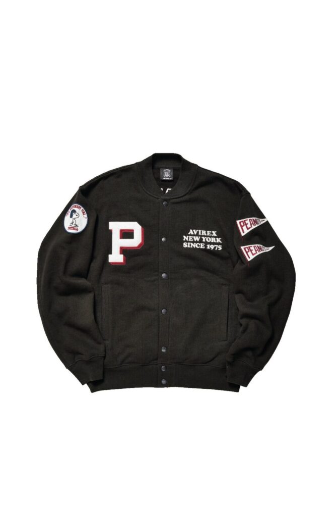 スタジャンモチーフにスウェットで製作したカーディガン。ミリタリーとカレッジのスタイルに、愛らしいピーナッツの世界観が融合した遊び心のあるオリジナルデザイン。1万7380円