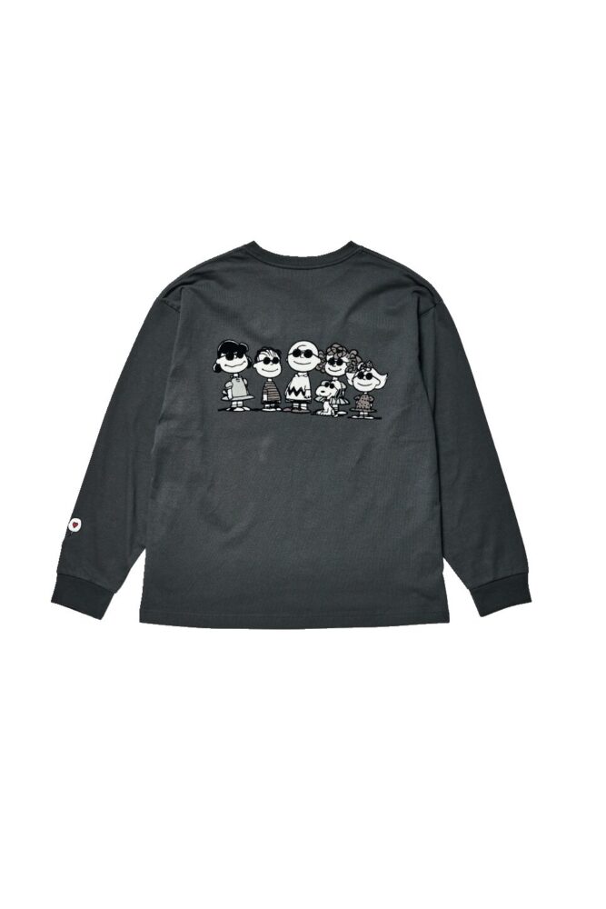 サングラス姿のピーナッツの仲間たちが並ぶグラフィックを背面にフロッキープリント。フロントにはブランドロゴがプリントされ、左袖にはウッドストックの刺繍が入る。8800円