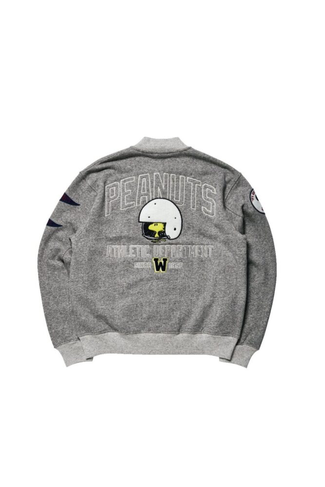 スタジャンモチーフにスウェットで製作したカーディガン。ミリタリーとカレッジのスタイルに、愛らしいピーナッツの世界観が融合した遊び心のあるオリジナルデザイン。1万7380円