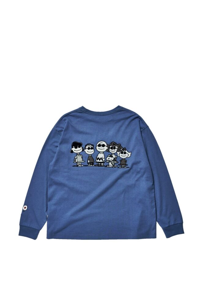サングラス姿のピーナッツの仲間たちが並ぶグラフィックを背面にフロッキープリント。フロントにはブランドロゴがプリントされ、左袖にはウッドストックの刺繍が入る。8800円