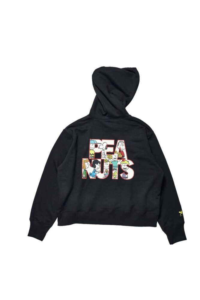生地染め裏毛パーカをベースに背面にはピーナッツロゴのなかにキャラクターが載せられた大きなプリントがインパクト大。フリーサイズでゆったりと着られるのも良し。1万4080円
