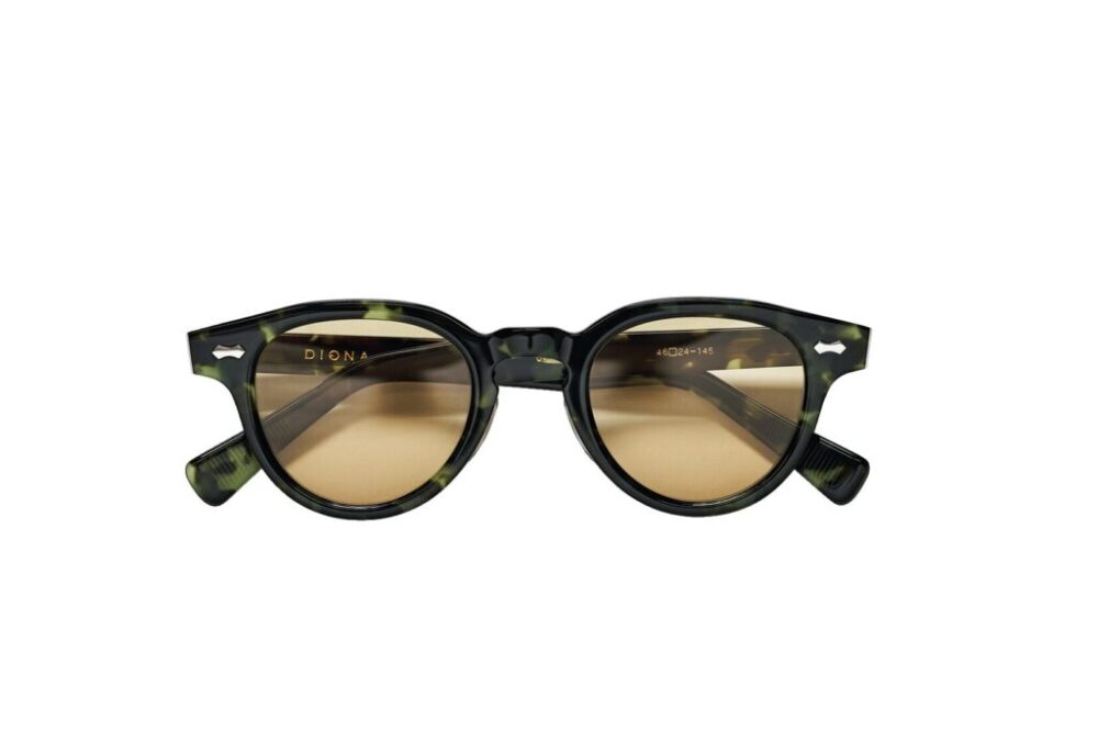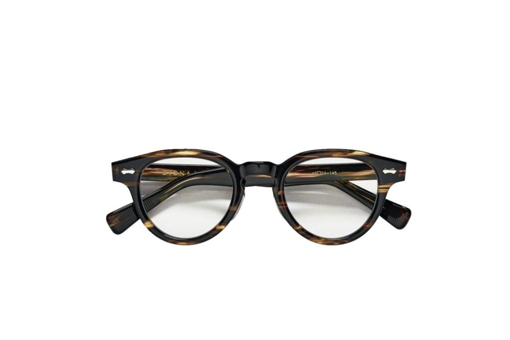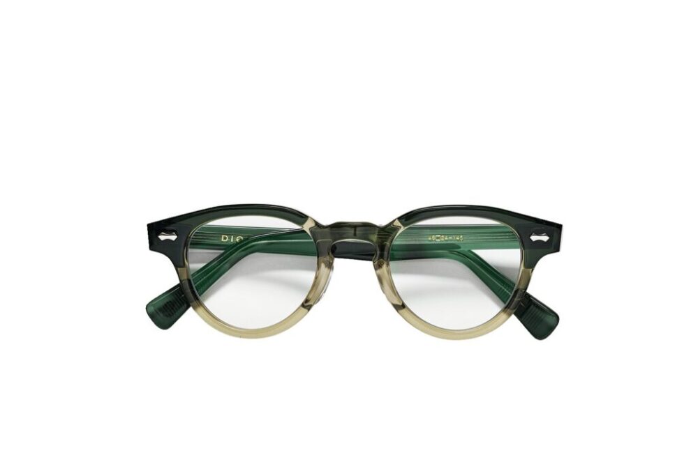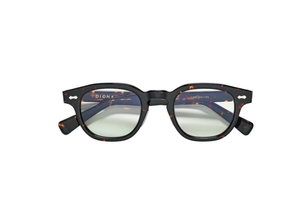 軽やかなクリア系フレームは夏だけでなく、重たい印象になりがちな冬の着こなしにもすごくオススメ。洗練された印象にもなる。グリーン系レンズは四季を通じて使いやすく、個人的にも愛用。