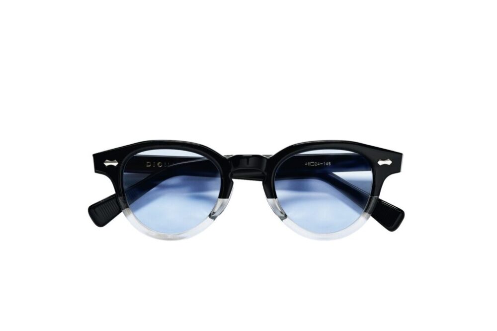 Jettのクリアブリッジモデル。フレーム上部が濃色でブロータイプのような雰囲気のため、上品な印象が強い。ブルー系のカラーレンズにすることで、品を残しながらオシャレ感を程よくプラス!