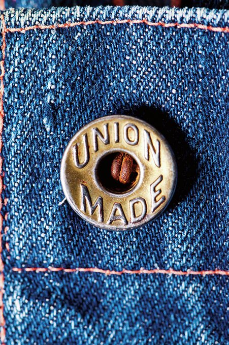 年代により、デニムパンツにつくフロントボタンのデザインにも変化が見られる。1930年代中期頃まではブランド名ではなく「UNION MADE」表記となる。