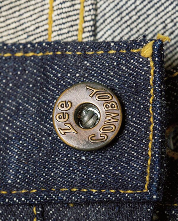 1930年代の後期頃から、ブランド名の〈Lee〉とモデル名にも入っている「COWBOY」の文字が入ったフロントボタンへと変更される。