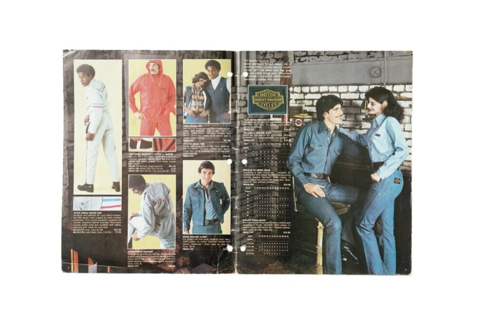 1979年のハーレー社のカタログには、ラングラーとのコラボレーションがオフィシャルウエアとして紹介されている。タフなウエスタンウエアを鐵馬乗りも求めた。