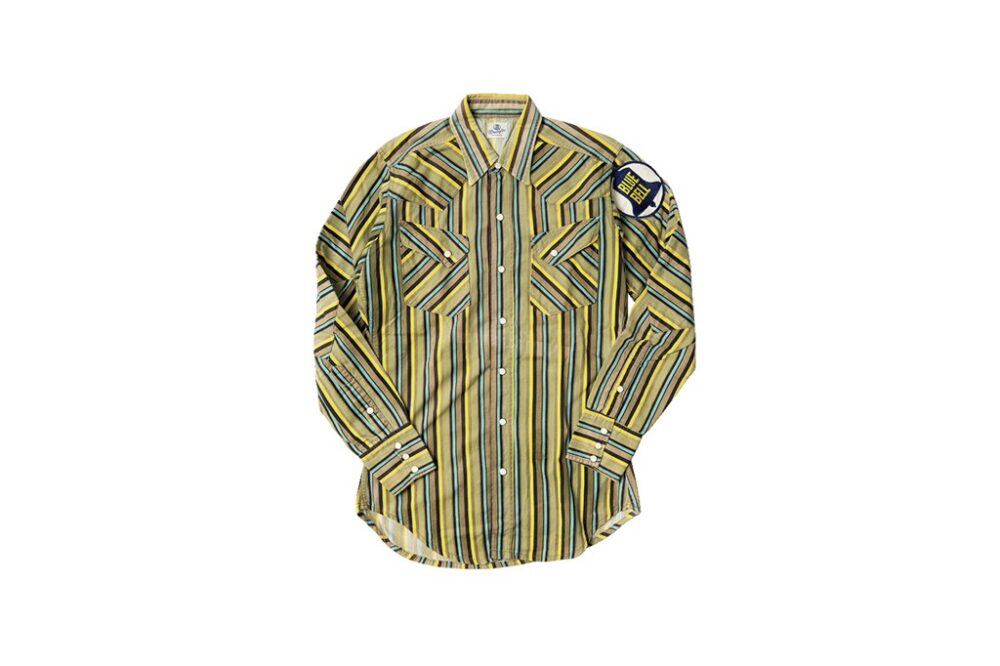 一見、カジュアルなシャツに見えるが、ピエロ役のために作られた希少なロデオクラウンシャツ。衣装のためタグにはサイズ表記がなく、通常のウエスタンシャツにはないエルボーパッチが付く。テキサスのディーラーより購入した。