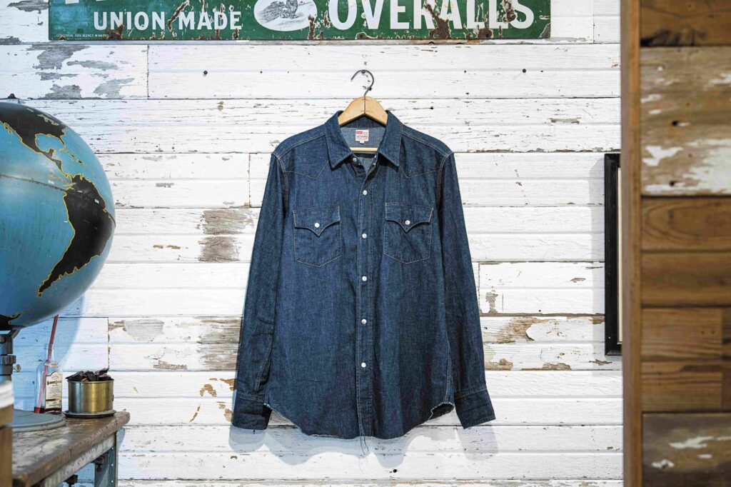 「ライトオンスでシルエットが細く美しいので、タックインした際も腰のあたりがもたつかないんです。この部分が気になる方も多いと思いますが、その意味では理想的な一着。もちろんTシャツにさらっと羽織るアウトスタイルでも、ウエスタンな気分で着こなせます。雰囲気のあるシャツだからこそ、シンプルに合わせるだけで男らしくなりますよ」と魅力を語る。