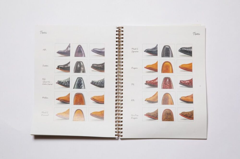 某ウエスタンブーツメーカーのカタログ。現在は既製品として多くのモデルは存在するが、当時はカスタムオーダーが主流だった。写真のように選べるトゥの種類も多く、ほかにも革の種類やシャフトの装飾のデザインを選ぶことができた。もちろん、現在もメーカーやショップによってはオーダーが可能。はじめてのウエスタンブーツをオーダーで作るのも粋だ。