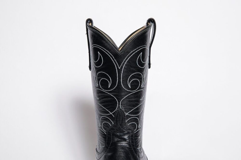 高さのあるヒールもウエスタンブーツの特徴。実際のカウボーイが履くブーツにおいては、乗馬時に足が鞍から滑り落ちないように、少し傾斜している。