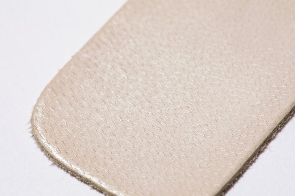 牛革に比べて繊維の密度や強度は低いが、薄くて軽く、柔軟性も高いため足に馴染むまでにそこまで時間を要さない。手触りも滑らか。