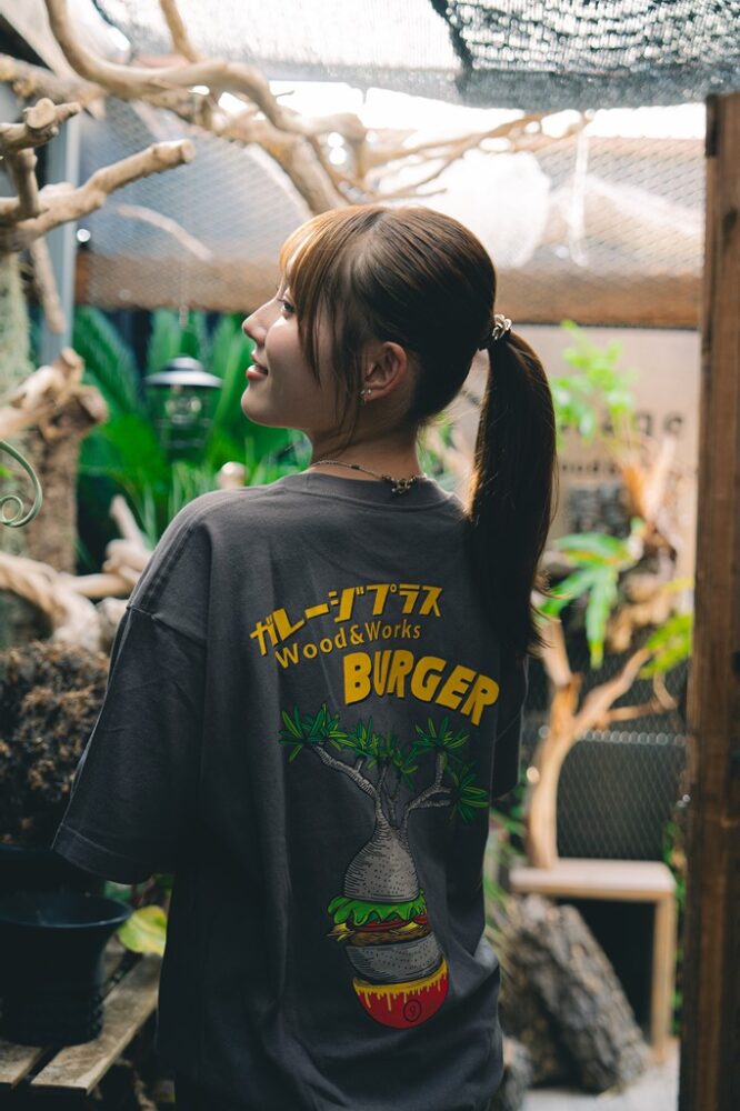 植物や雑貨で培った独自の感性をアパレルへと昇華したオリジナルTシャツは、ストリートカルチャーを取り込んだデザインで、街でもガレージでも映える仕上がりに。雑貨や観葉植物など、日常に溶け込むアイテムも 展開し、緑に囲まれた空間が生み出す世界観ごと取り入れられる。「Tシャツ」 ¥5,000。