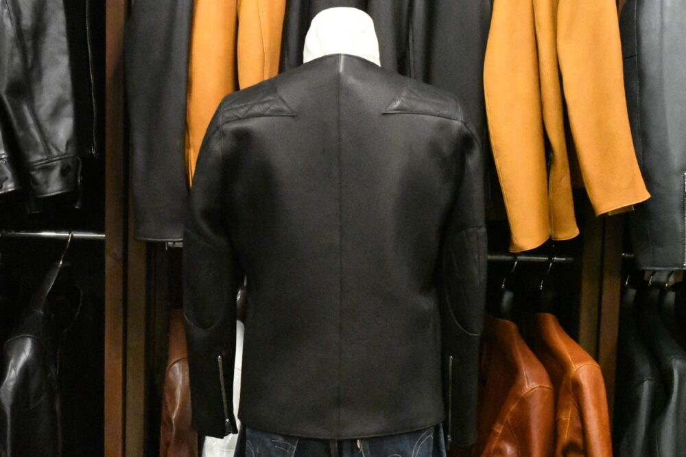 ブランド始まって以来の人気モデル、Budの肩肘にパッドを配したレーシングスタイルのノーカラージャケットBAD。