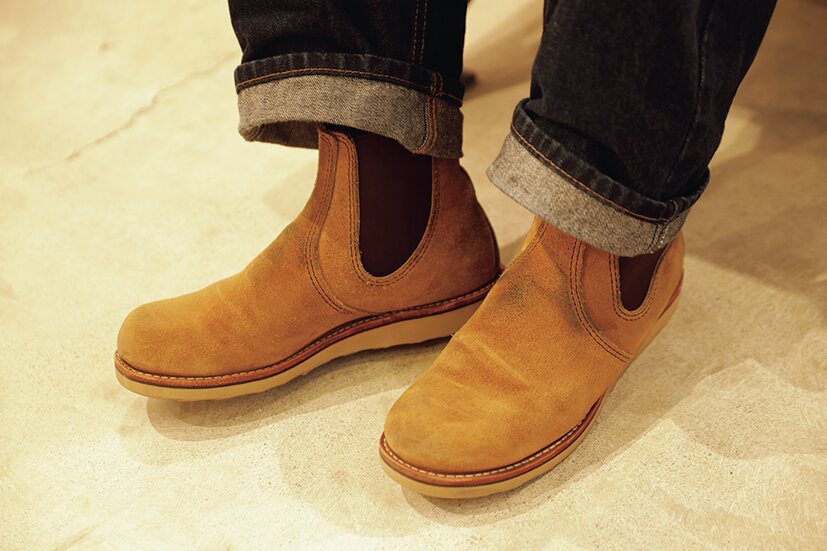 4年ほど愛用しているスウェードのクラシックチェルシー。足入れしやすく履きやすさからヘビロテしているのだとか。