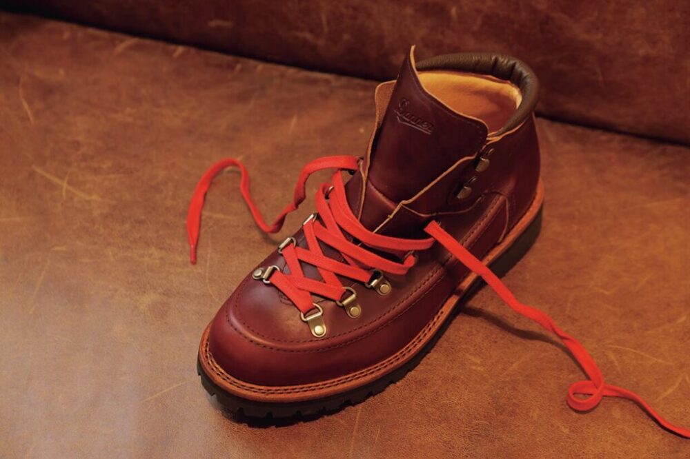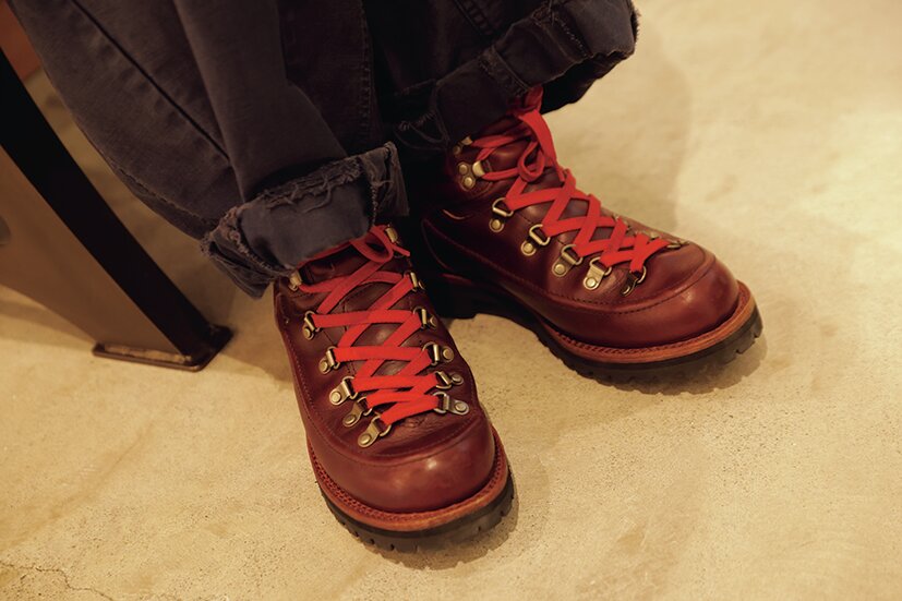 仙台店のみで展開しているダナーのリトレースを愛用。クロムエクセルのバーガンディをアッパーに採用した特別モデル。