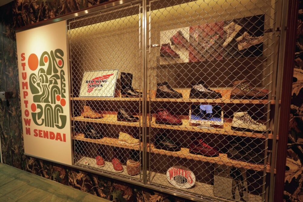 場所はJR仙台駅西口から徒歩10分ほどのクリスロード商店街の一角。東京の渋谷店、銀座店と同じく、長い歴史とともに愛されてきたレッドウィングやダナー、そして至高のワークブーツと世界的に称されるホワイツブーツを揃え、アメリカンワークブーツブランドを軸に展開する。