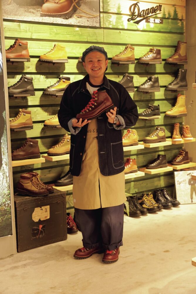 ショップマネージャー・盛山和行さん。スタンプタウン仙台の店長を務める盛山さん。大のブーツ好きであり、履き込んだレザーブーツのヤレ感がたまらない。