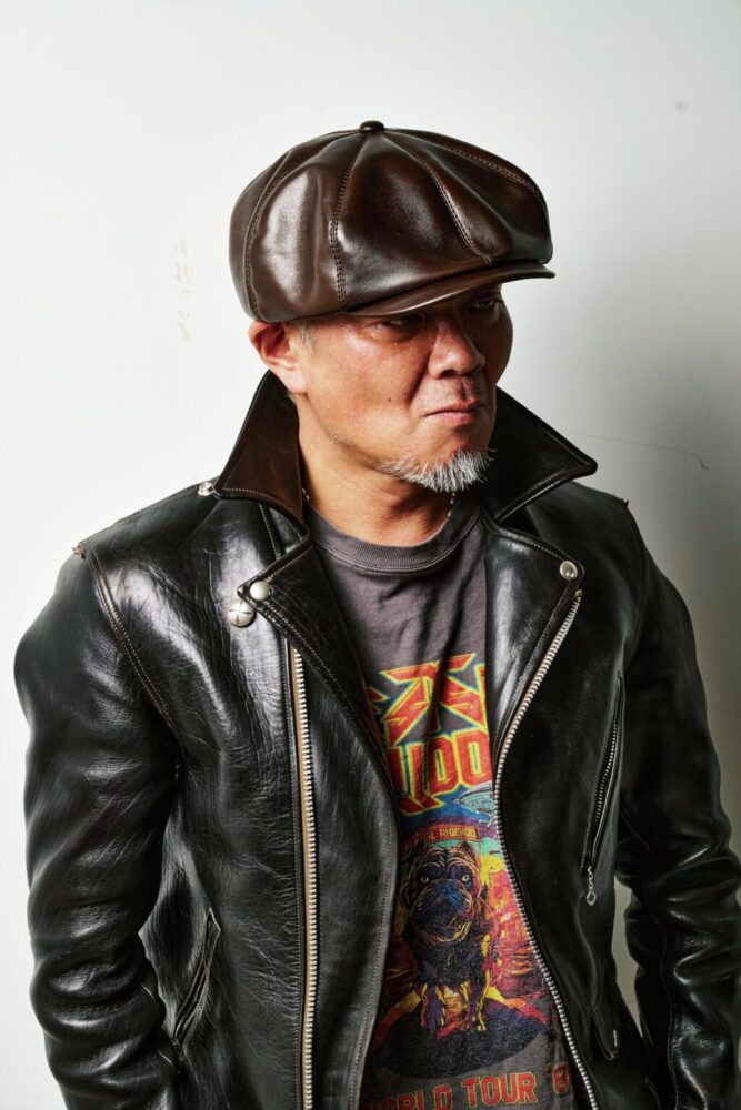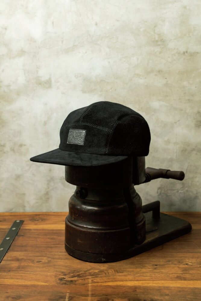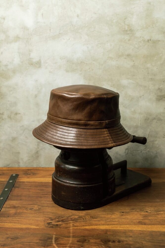 「レザーで帽子を作る工程は、基本的には布帛と近いモノですが、布帛と同じパターンでレザーの帽子を作っても佇まいは別物。そこで、革を扱い続けてきた感覚を活かして、何度も調整を繰り返して完成したのがブルーネルのプロダクツです。ジャケットでも帽子でも、製品になった姿が完成ではなく、使い込んだ先に革が馴染み、風合いを増す、革の魅力は変わらない。いつまでも使い続けられる帽子作りを意識しています」。