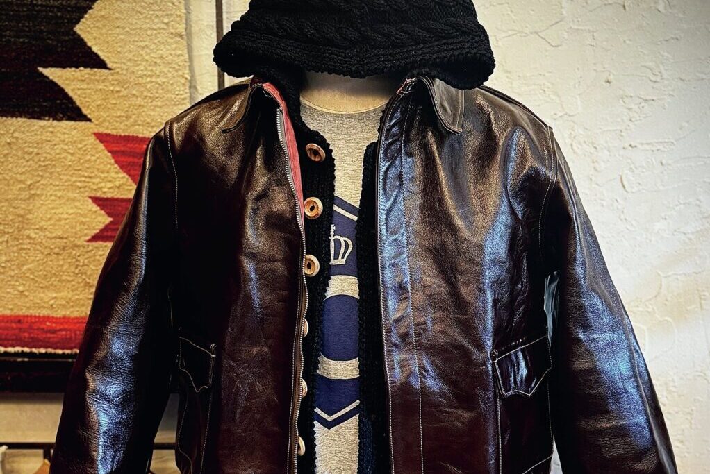 バズリクソンズの定番、ラフウエアのA-2。「おいしさ」の秘密は、ハンドアニリン仕上げのホースハイド。深みのあるシールブラウンだ。カタログ掲載は最大サイズ44だが、外国人客の多い新宿のジャンキースペシャルが別注したビッグサイズ46&48。レイヤードも楽しめる。26万4000円(ジャンキースペシャル TEL03-3232-0850 https://jukyspecial.com)