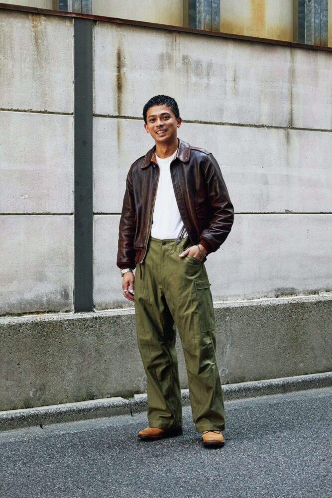 「バズリクソンズ」で企画を務める佐々木さん。若きホープはフライトジャケット[A-2]を自分なりのルールで着こなす。