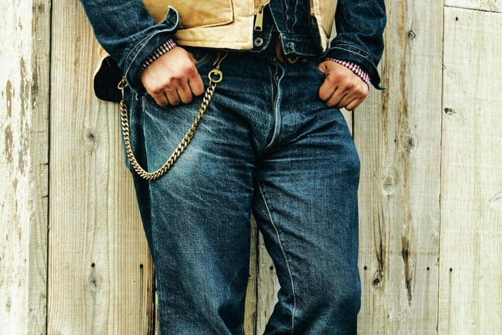 また、サイズは必ずジャストで穿きます。その方がシルエットが綺麗に出ますし、穿き込むことでより経年変化を楽しめるからです。’90年代らしくデニムオンデニムで着用することが多いですが、トップスのレイヤードや、真鍮のウォレットチェーンを加えて単調にならないようにしています」