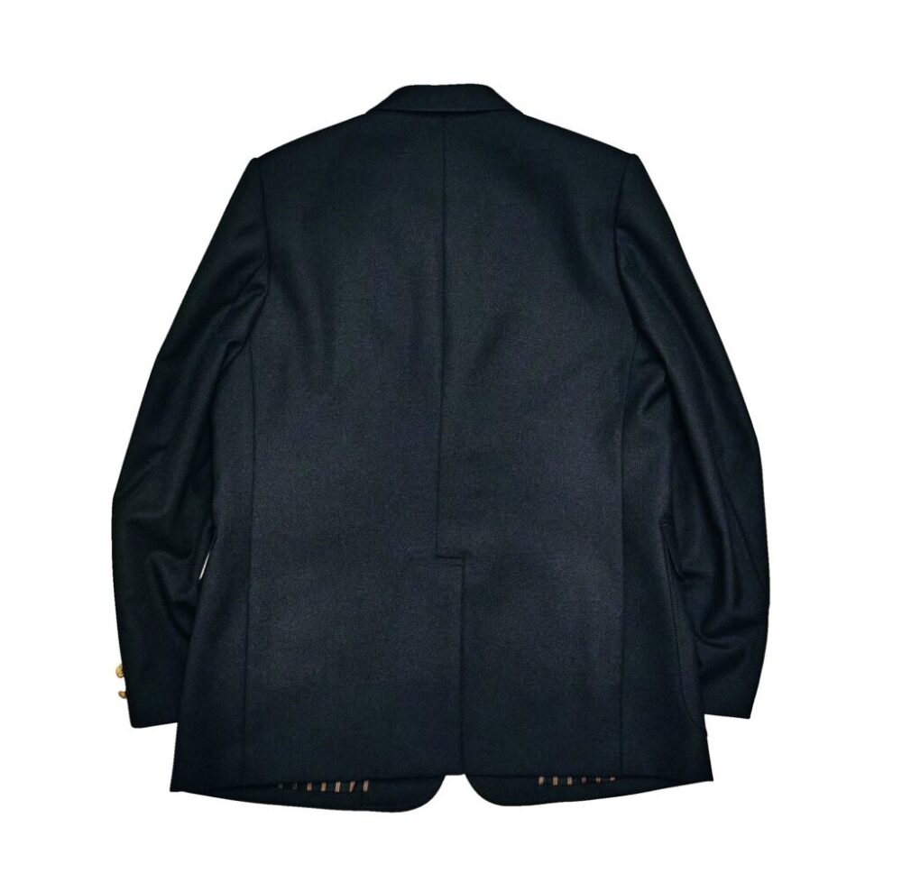 「ジェラード」が初めて紺ブレを製作。1980年代から’90年代にかけて東京・渋谷を中心に流行した“渋カジ”をベースに、弾返り3つボタン、3パッチポケット、ボックスシルエット、背面のフックベントなど、旧きよきアメリカのスポーティなブレザーのディテールを踏襲している。素材はメリノウールを使用した、光沢感のあるサージ生地を採用。発売は来年1月の予定だ。9万1300円