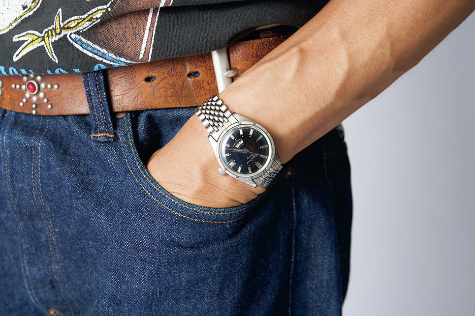 カジュアルなジーンズにはドレスウォッチを添える