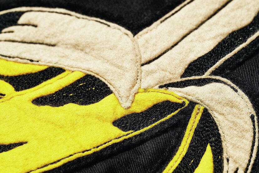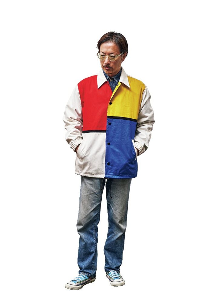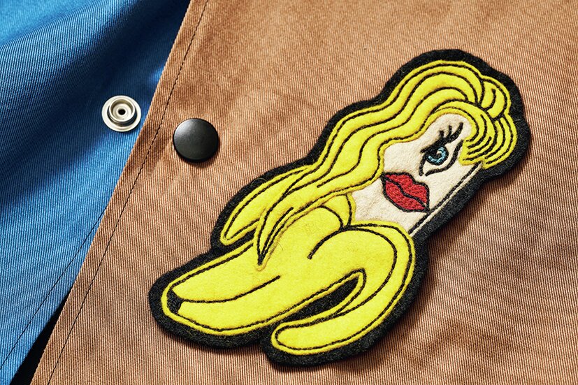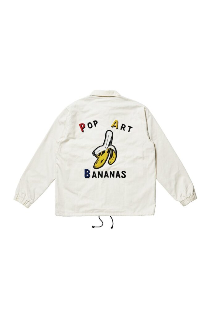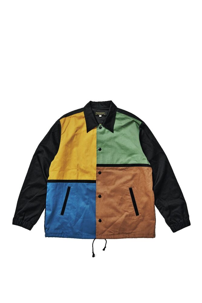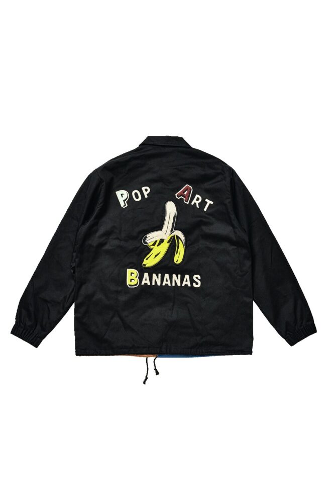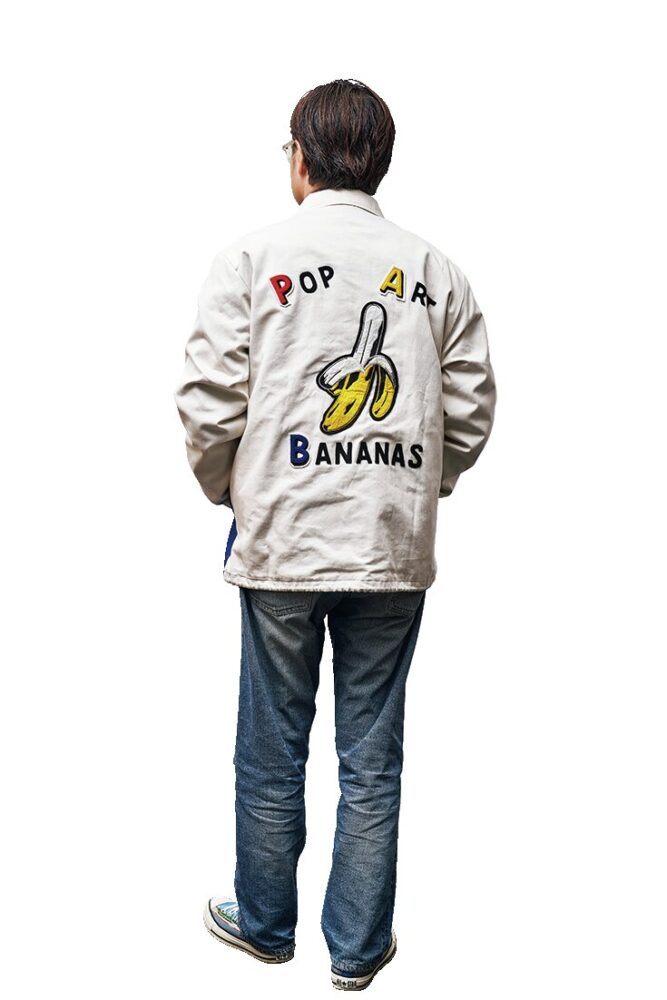 ヴィンテージパッチを当時の手法で再現する人気ブランド『NORTH NO NAME』に別注したコーチJKT。モンドリアン柄のフロントパネルが特徴で、背中にはポップアート バナナズのロゴをパッチでカスタム。女性の顔が付いたバナナパッチがさらに付属する。84,700円