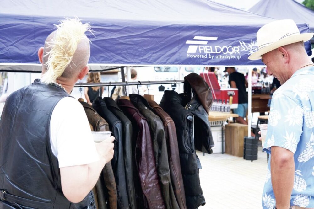 ジャックダニエルブースの一角で、オンラインサロン・モヒカン小川のレザージムのリアル版を開催。オンラインサロン会員や、YouTubeチャンネル『CLUTCHMAN TV』で配信されている「レザーチャンネル」の視聴者、本誌読者、アメカジ業界の本誌お馴染みの面々まで、多くの方々がモヒカン小川の元を訪れた。会場には茶芯レザーコレクションのほか、モヒカン小川の私物の革ジャンも多数展示され、モヒカン小川を囲むような形でジャックダニエルを片手に、レザー談義に花を咲かせた。