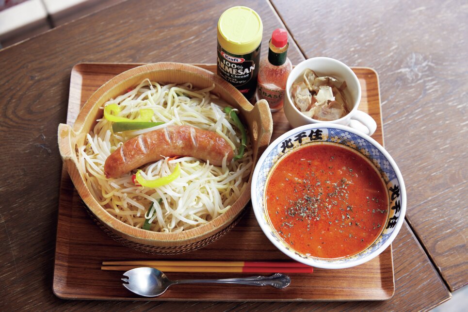 静岡県富士市のご当地グルメである「つけナポリタン」をアレンジ。フランクフルトを鎮座させ、ホットドッグに見立てた。ピリ辛のトマトソースに箸がとまらない。1650円