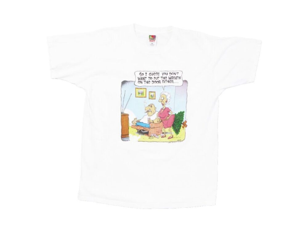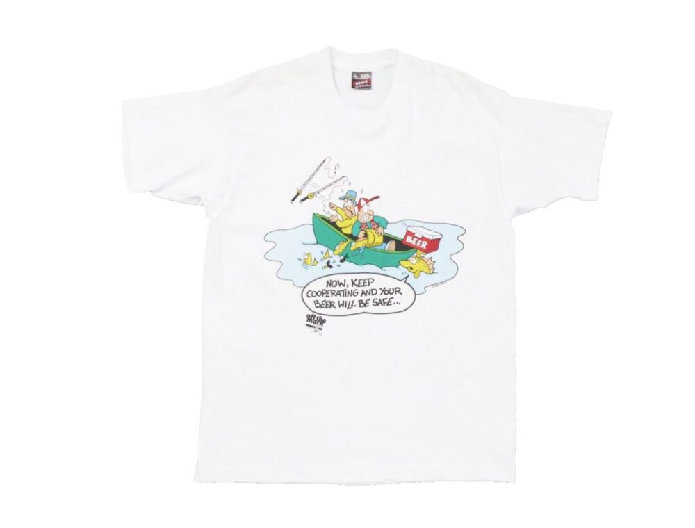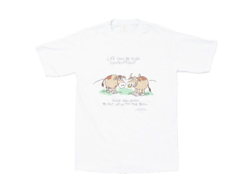 ロックや映画Tといった人気カテゴリーは価格が高騰し、以前のように気軽に楽しめる存在ではなくなった。そんな状況のなかで、次にどんなTシャツを選ぶべきか悩む人に提案したいのが、掘れば掘るほどに面白いプリントTシャツ。古着店オーナーが最近注目しているアイテムから、まだ注目されていない隠れた一枚までを3週に渡り紹介する。前回は新聞の風刺漫画Tを取り上げたが、第3週目はとにかくシュールで皮肉の効いたプリントTシャツ