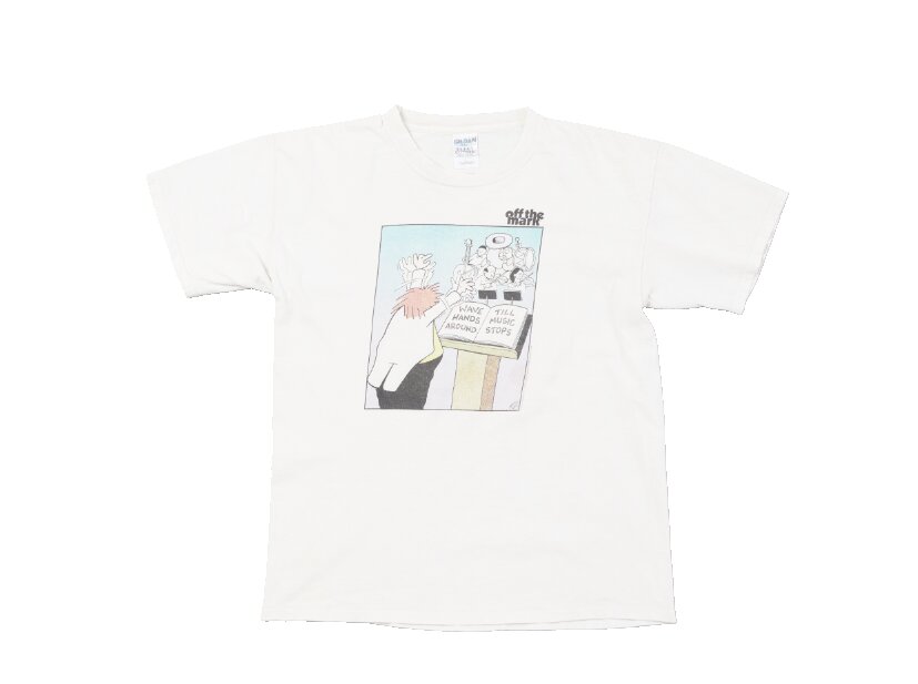 1987年に始まったマーク・パリシによる漫画である。イラストのタッチは日本の漫画にも似ており、私たちでも親近感がわく。多くの作品はグリーティングカードのデザインとして採用され、人気を博した。数は多くないが、こうした作品の一部はTシャツ化されたものも存在する。プリントの絵柄の中には「off the mark」のロゴが入るため、探す際の目印として覚えておくとよい。