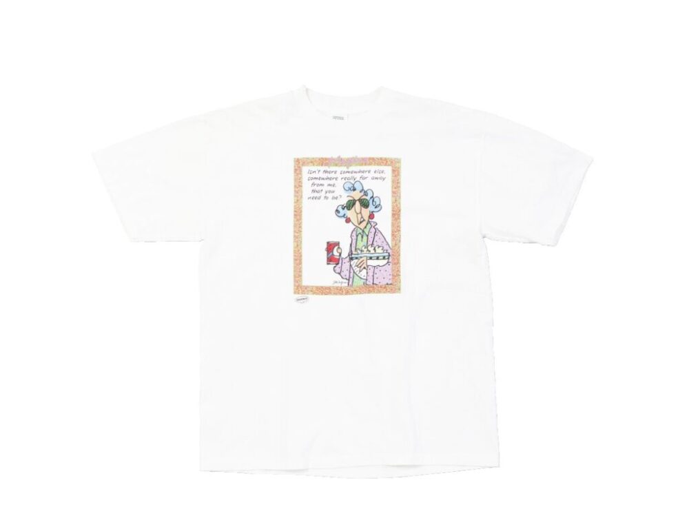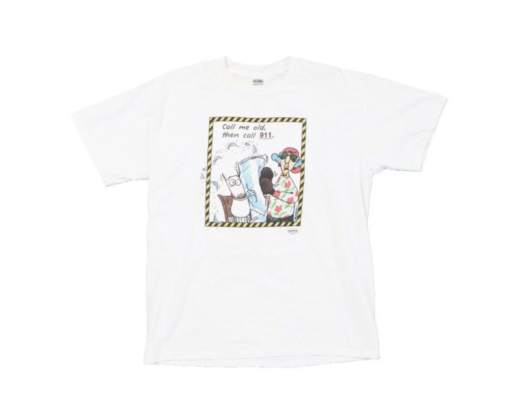 グリーティングカードをはじめ、マグカップやタオルなど様々なアイテムを製作しヒットさせた「SHOEBOX」。Tシャツも数多くリリースしており、日本の古着市場でもたびたび目にする。人や動物が不思議な行動をする一コマが描かれ、思わず気になってしまう。注目するなら、まだあまり見つかっていない今のうちである。