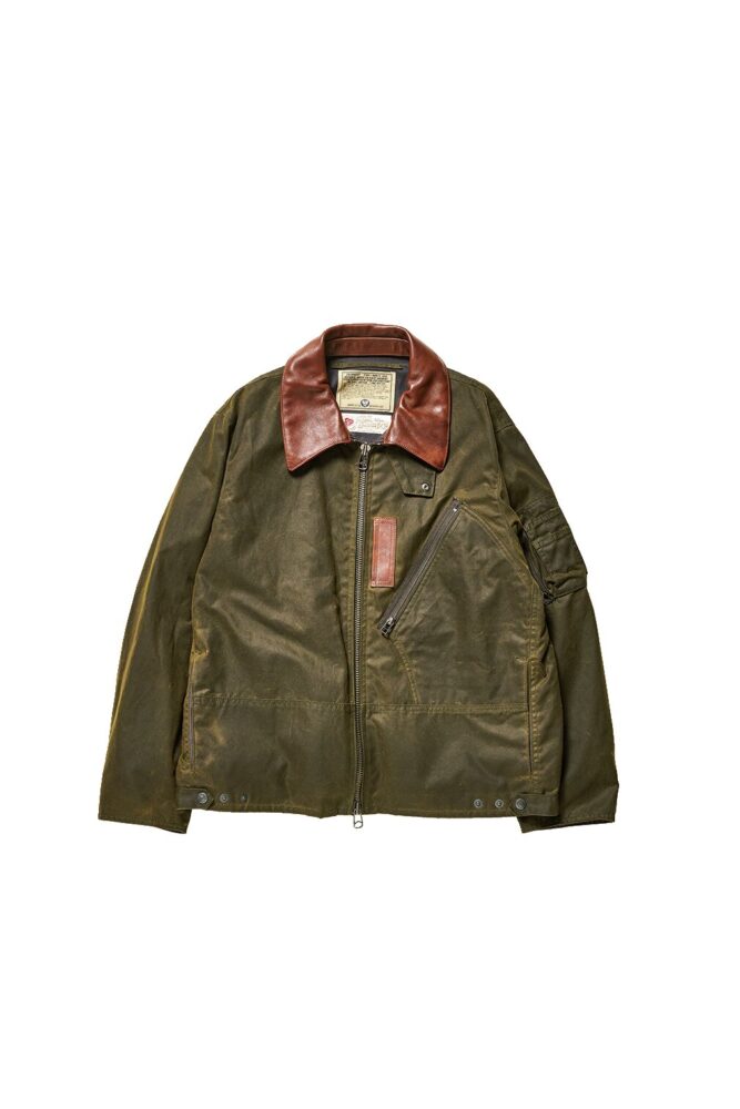こちらが同素材で作られたジャケット「K-2 CUSTOMS」襟がレザーで作られておりイルドな装い。7万5900円