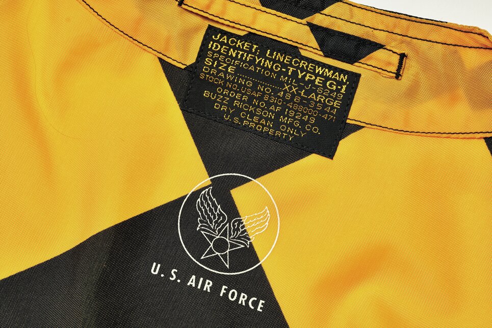 1950年代アメリカ空軍が飛行機の地上誘導員のために採用したラインクルーマンジャケット。ミルスペックにはTYPE G-1と記されている。G-1と言えば海軍の名作フライトジャケットだが、実は空軍にもまったく異なるG-1が存在していた。目立つことが重要なラインクルーマン。街で着てもよく目立つので安全かつ安心なのだ。バズリクソンズが当時のヴィンテージピースを忠実に再現した。6万4900円(ジャンキースペシャル TEL03-3232-0850 https://junkyspecial.com)