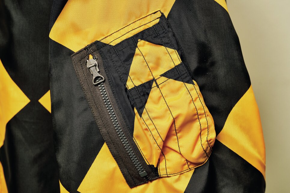 MA-1などのナイロンフライトジャケットに欠かせないシガレットポケットを備える。生地は派手だが、作りはシンプルなG-1の重要装備。