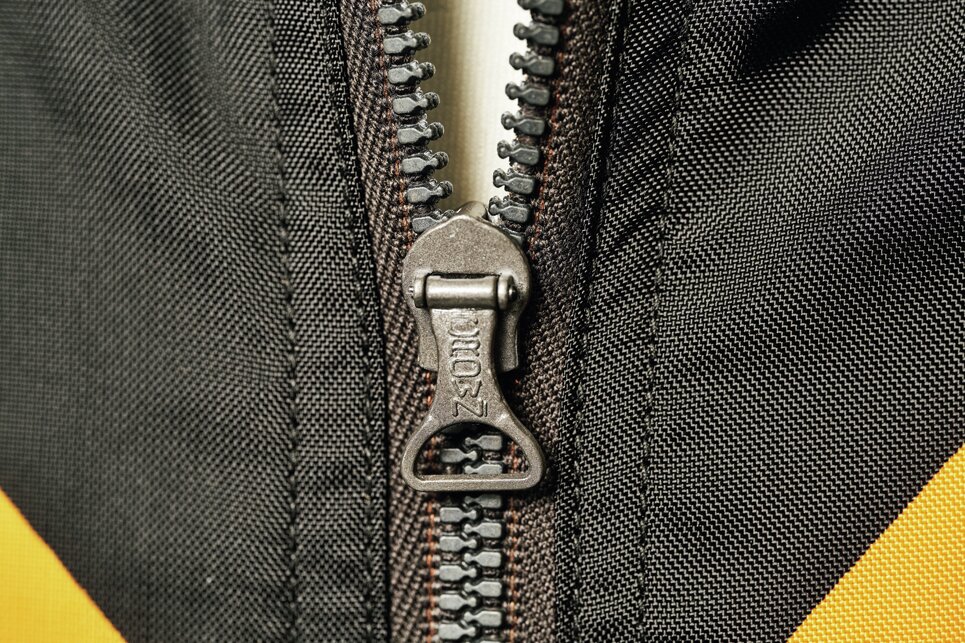 バズリクソンズの数々の名作フライトジャケットに使われてきたクラウンの復刻ファスナーを装備。ヴィンテージ感がグンと増す。