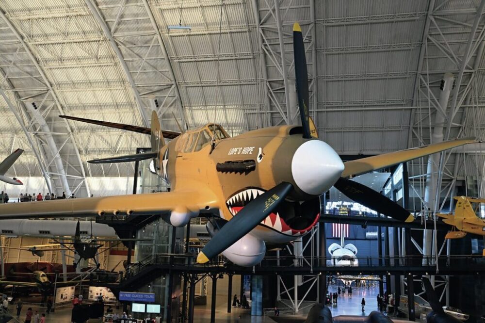 別館は大戦機が豊富に展示してある。これはカーチスP-40Eキティホーク。迫力のあるシャークマウスが印象的だ。