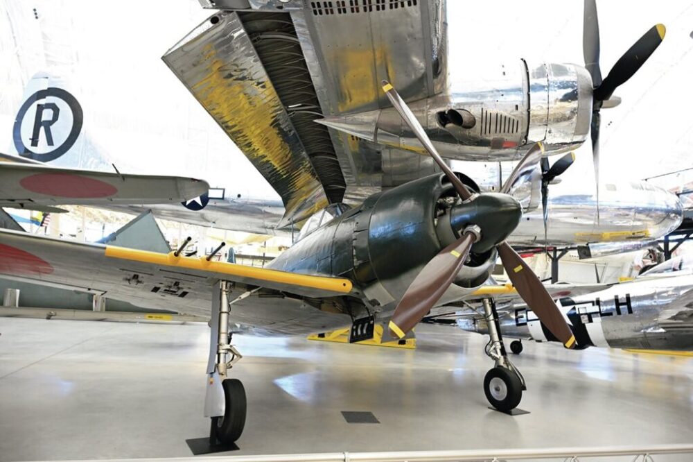 日本軍機も展示されてる。特攻専用機の「桜花」のほか、こちらの大日本帝国海軍の紫電改も展示。太平洋戦争の歴史を学べる。