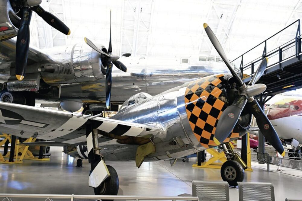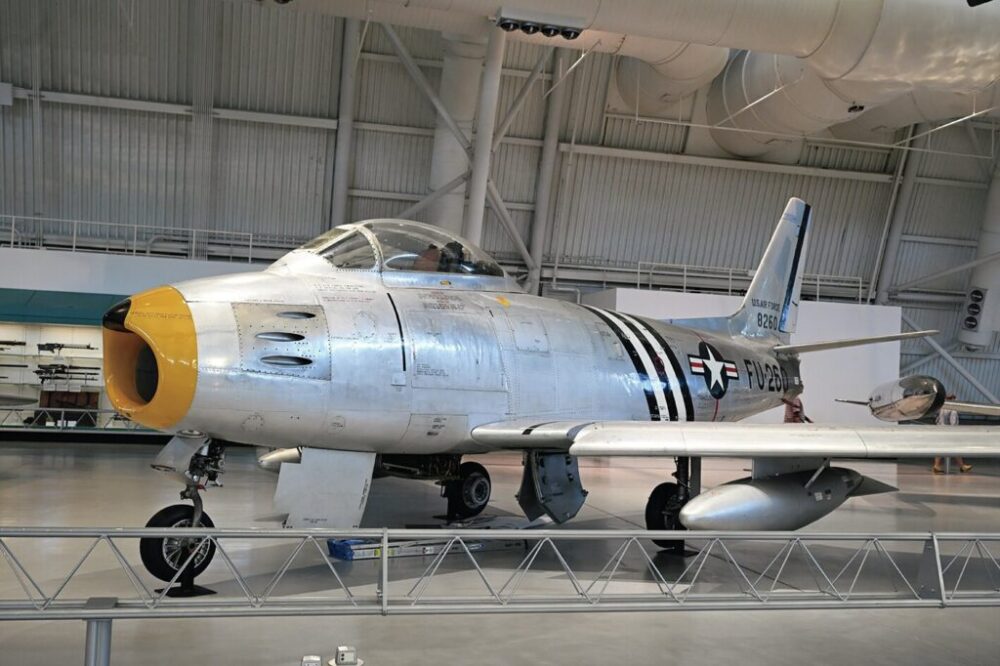 スミソニアン航空宇宙博物館では幅広い年代の航空機を展示している。写真は朝鮮戦争で活躍したノースアメリカンF-86Aセイバー。