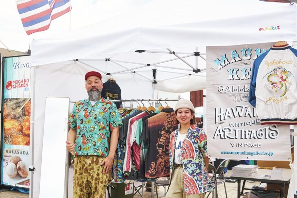 マウナケアギャラリーズやフラットヘッド、ヒースなどのアパレルも購入できるのがハンバーガーフェスの魅力。またジャックダニエルのコーナーでは、モヒカン小川と飲もう会を開催し、多くのファンが訪れて革ジャン談義に花を咲かせていたようだ。