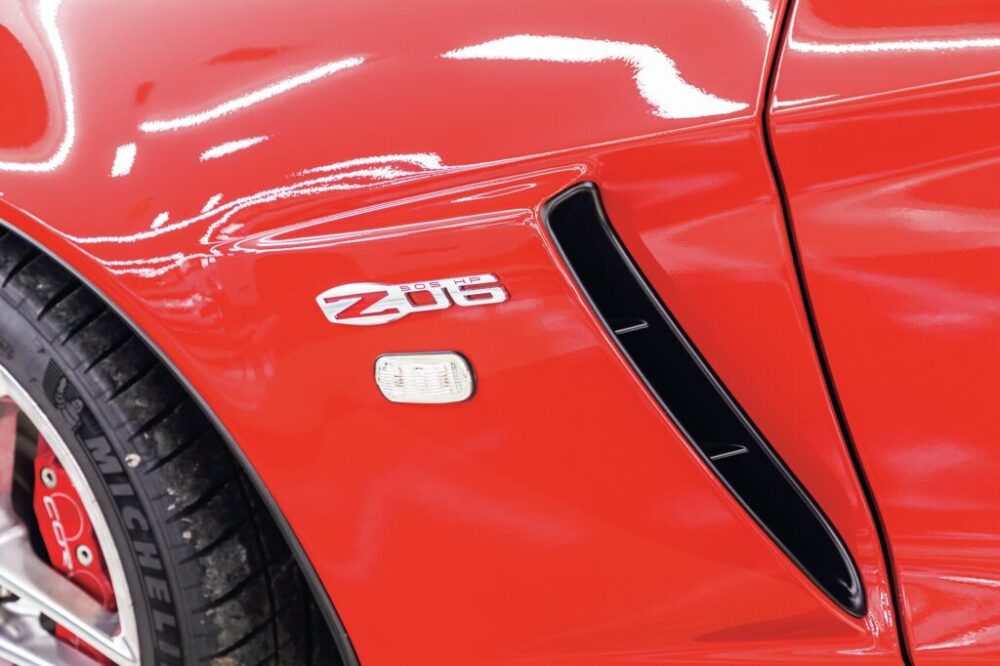 Z06は標準モデルと比べてワイドフェンダー化される。フロントフェンダーにはエアスリット部分にZ06のエンブレムが備わる。DATA