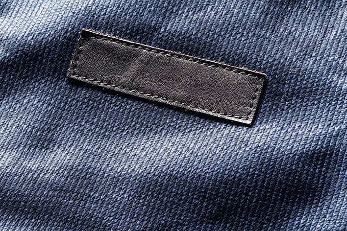 ヴィンテージ感のあるブラック×ゴールドの刺繍ネームラベルが右バックポケットに付属。
