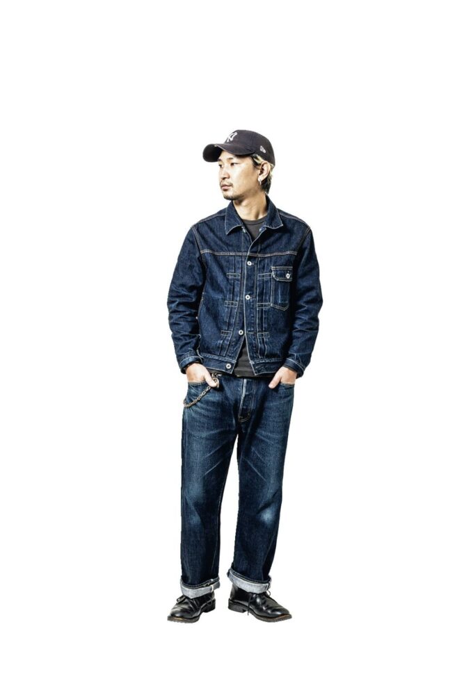 アメカジの王道スタイルでいま大人気のデニムセットアップもハズせない。横濱デニムの1stタイプのデニムジャケット(34,990円)とどうぞ。