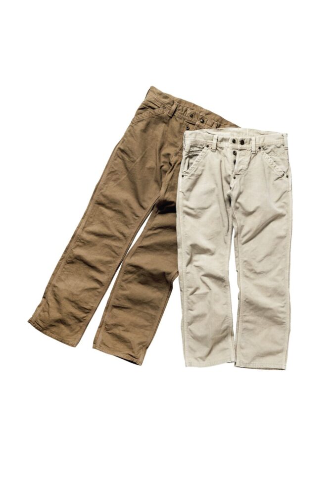 ジーンズ誕生前からワークウエアとして存在していたダックパンツの粗野な風合いはそのままに、洗練されたシルエットにアレンジしている。豊富なカラー展開も魅力で、同仕様のヒッコリーストライプモデルもラインナップ。各18,990円