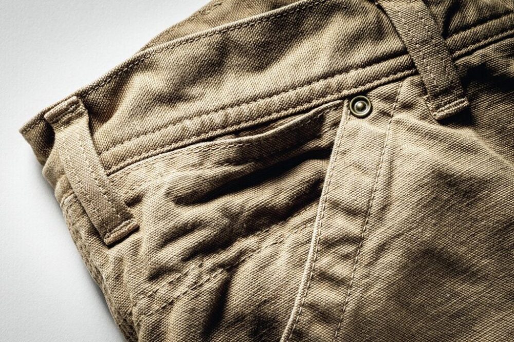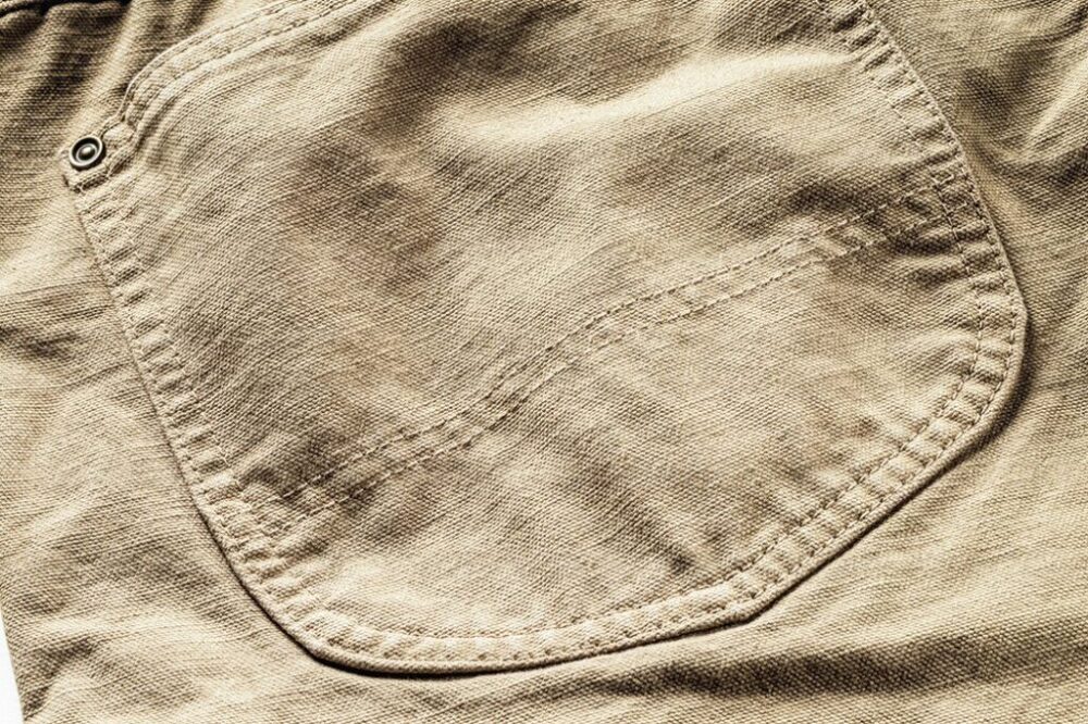 バックポケットには2本ステッチがあるが、これは強度を高める当て布の縫製を兼ねている。