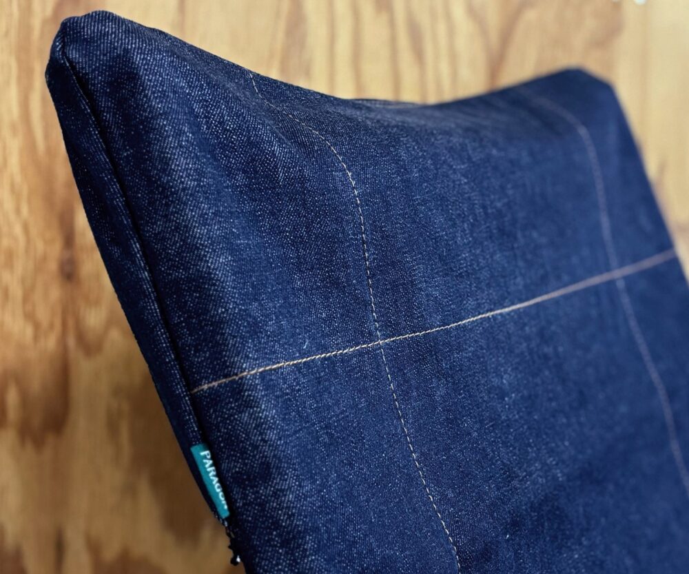 今後、岡本テキスタイル自社工場で織った反応染め13.5ozセルヴィッチデニムを使用した座面を展開予定。