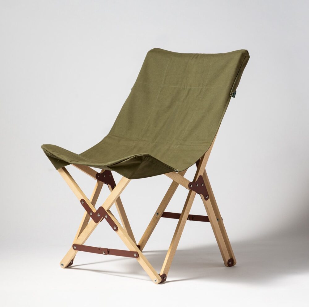 1952年に創業したデニム生地メーカーとして、ヴィンテージコレクターでもある取引先へ打ち合わせに伺った際に偶然見かけたおよそ100年前のキャンプ風景の写真。写真でエジソンらが座っていた椅子のシンプルさの中に隠された機能美、そして洗練された佇まいに心を奪われてしまい、同時に『この椅子は作れる、、どうしても作ってみたい』と直感したことが今回のプロジェクト発足のきっかけである。