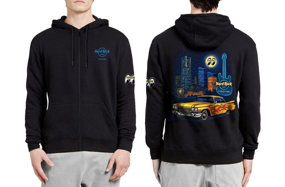 「MOONEYES®xHard Rock Cafe Yokohama Flame Car Hoodie」12,100円(サイズS~XXL)