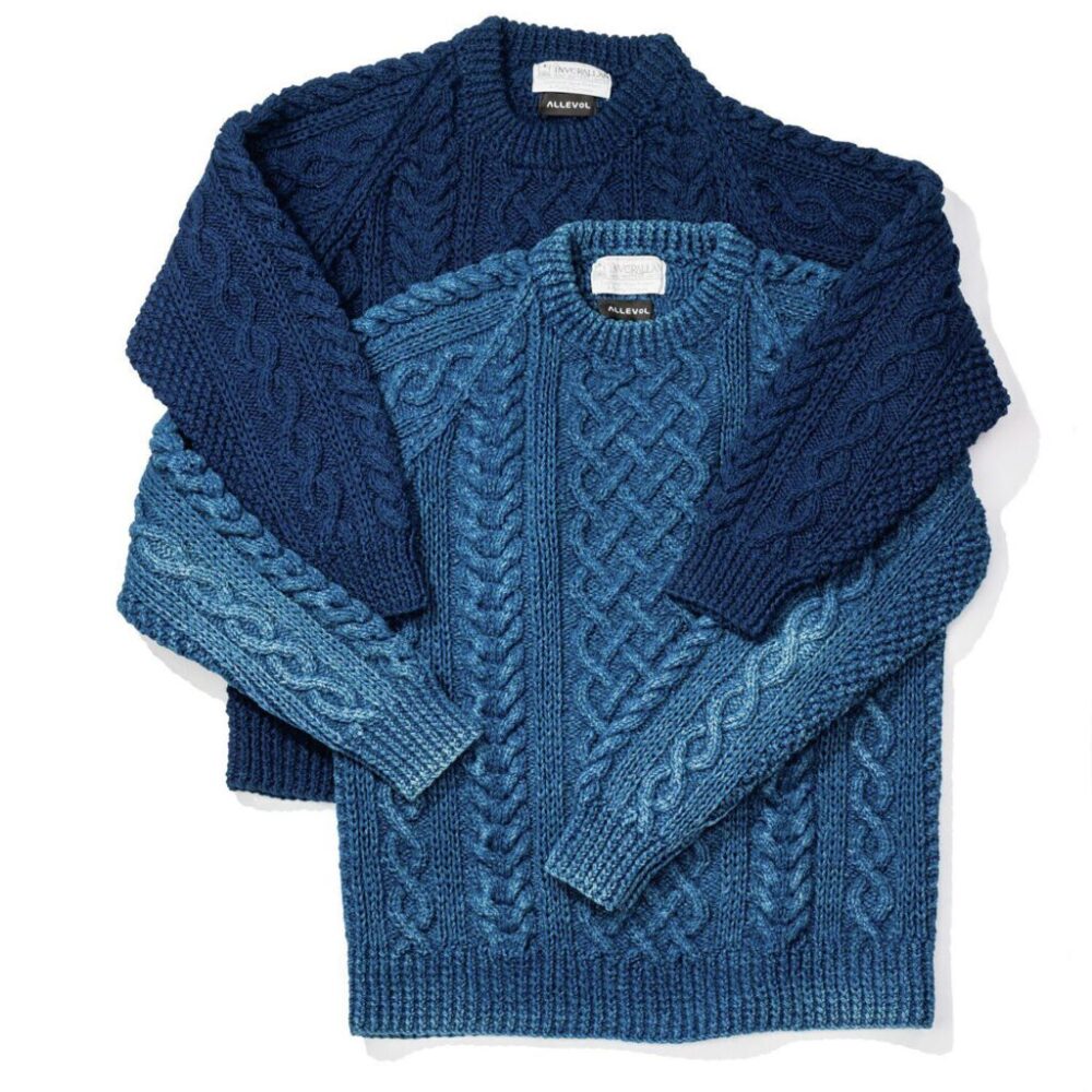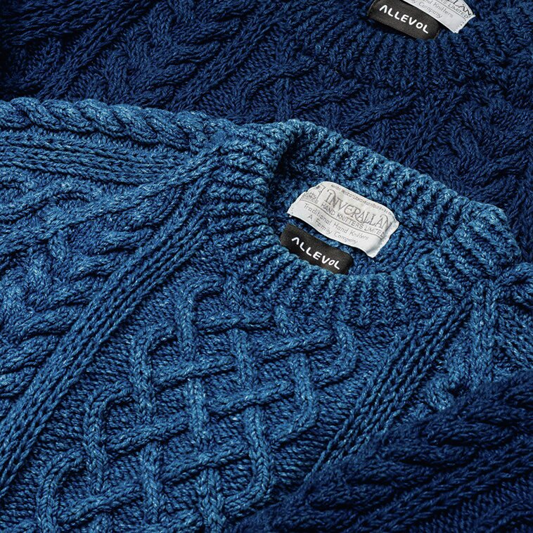 日本人ディレクター岡部隆志がイギリスで立ち上げたアレヴォル。最高品質を目指して、イギリスや日本でのモノづくりを行なっている。スコットランドの名門ニッターに別注している定番のインディゴコットンニットは10年以上続く定番人気商品。ブラックインディゴも展開する。69,300円(CLUTCH TOKYO https://clutch-tokyo.jp)